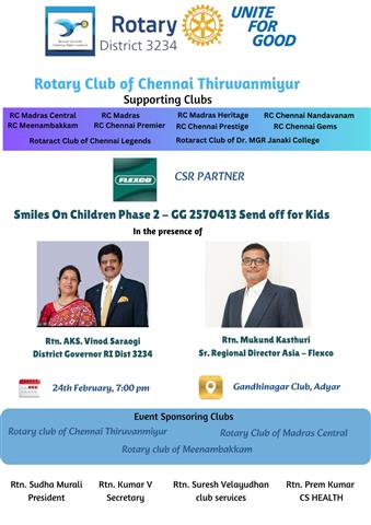 Rotary Club of Chennai Thiruvanmiyur hosted, “Smiles on Children Ph. . .