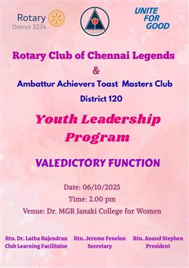 The Rotary Club of Chennai Legends is organizing a learning seminar. . .